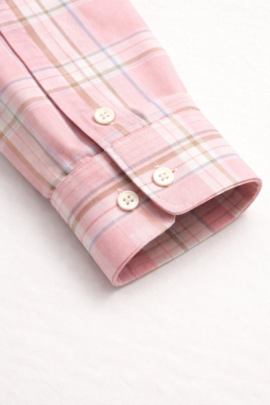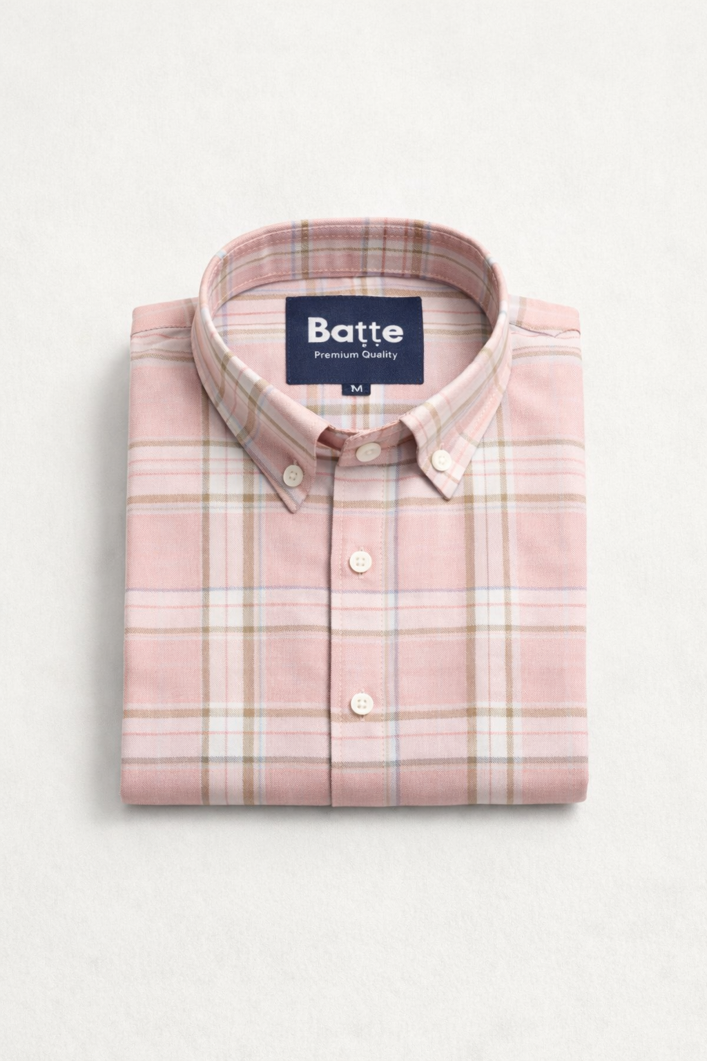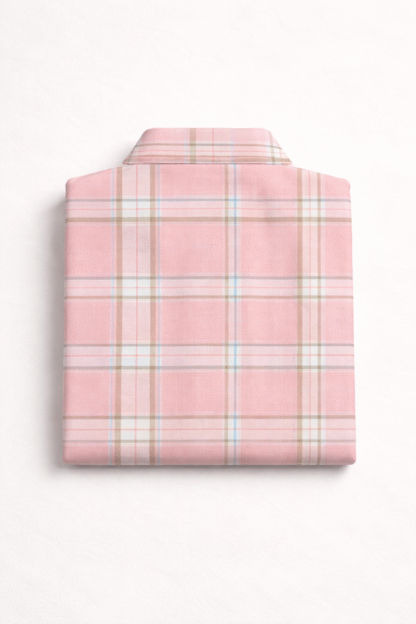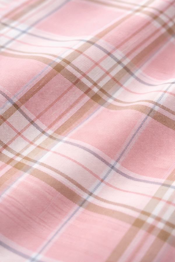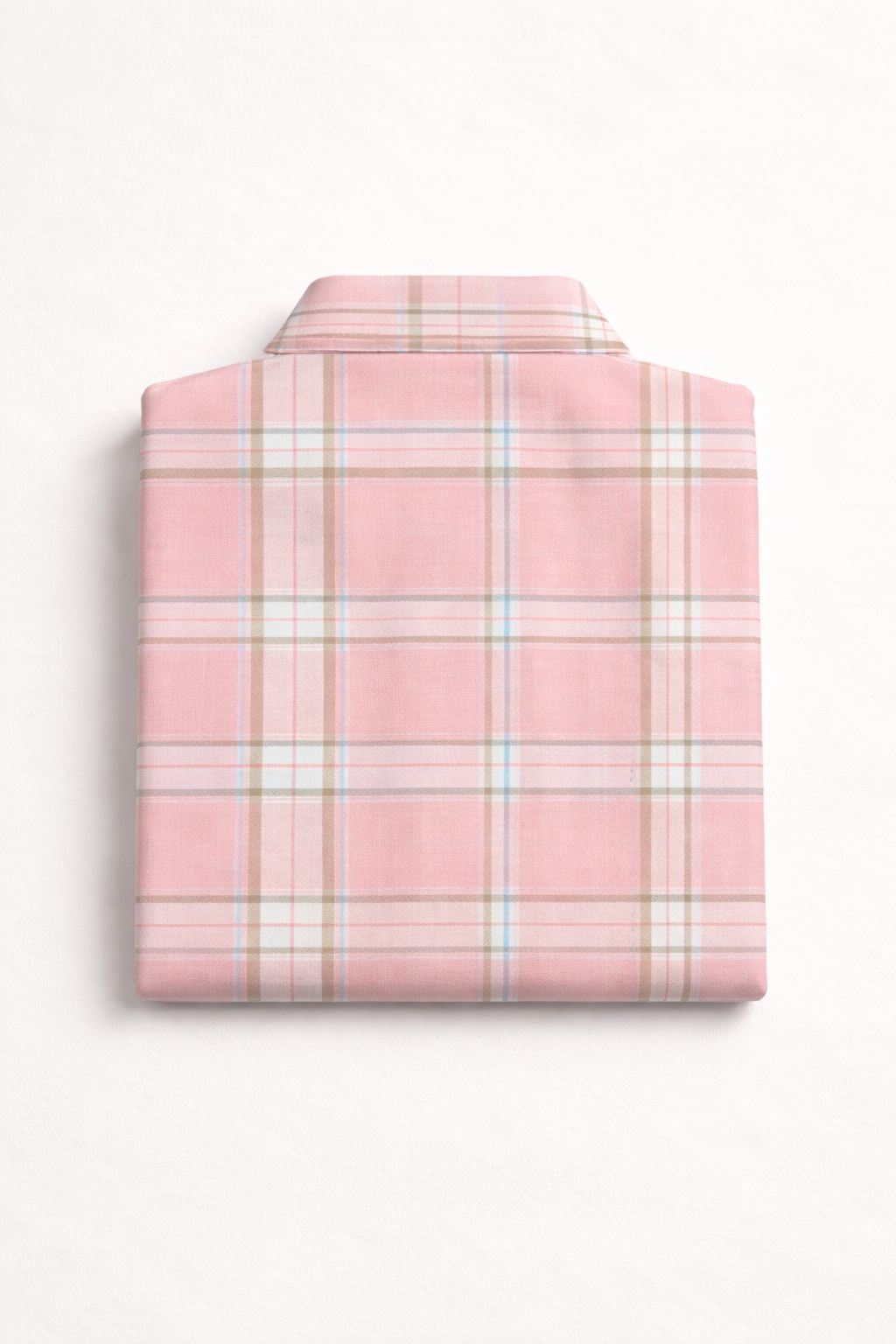 Classic soft brown check shirt crafted from a breathable cotton-linen blend for a comfortable and stylish everyday look.