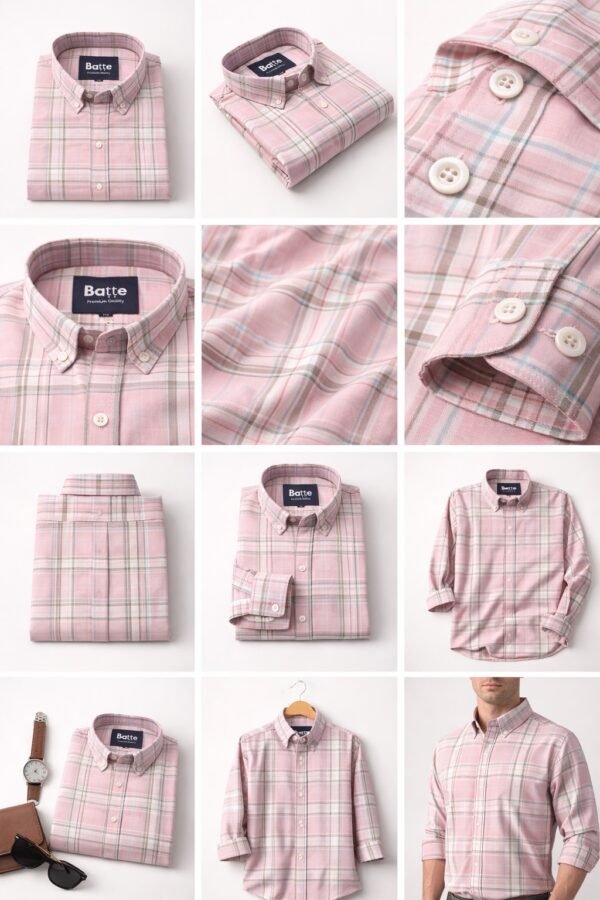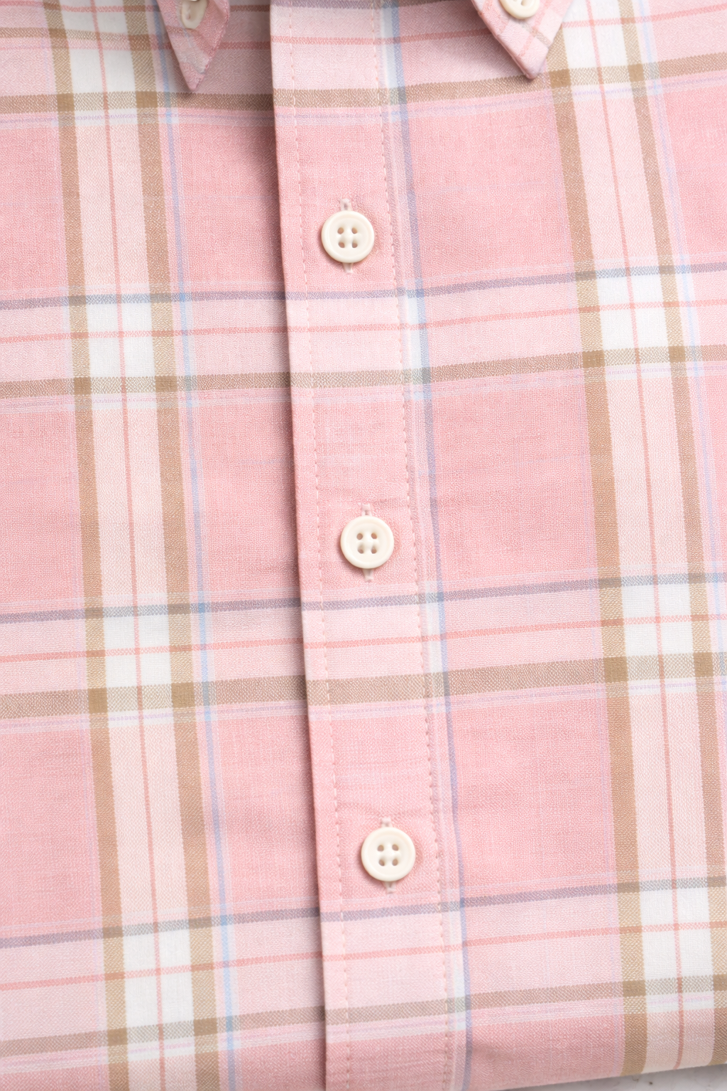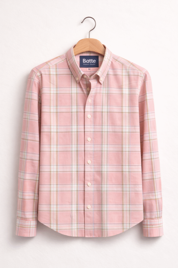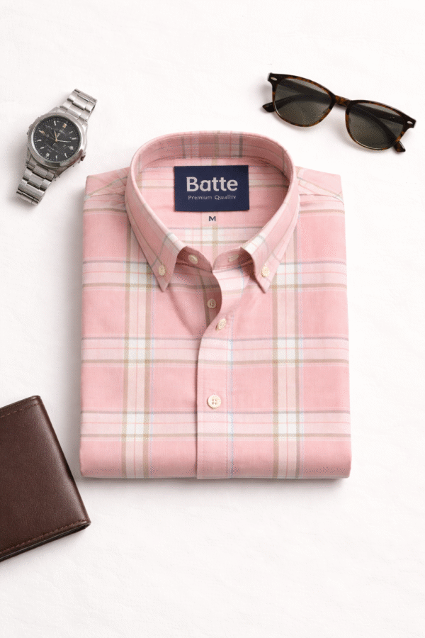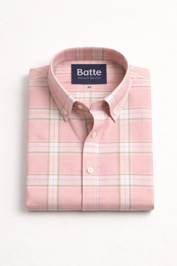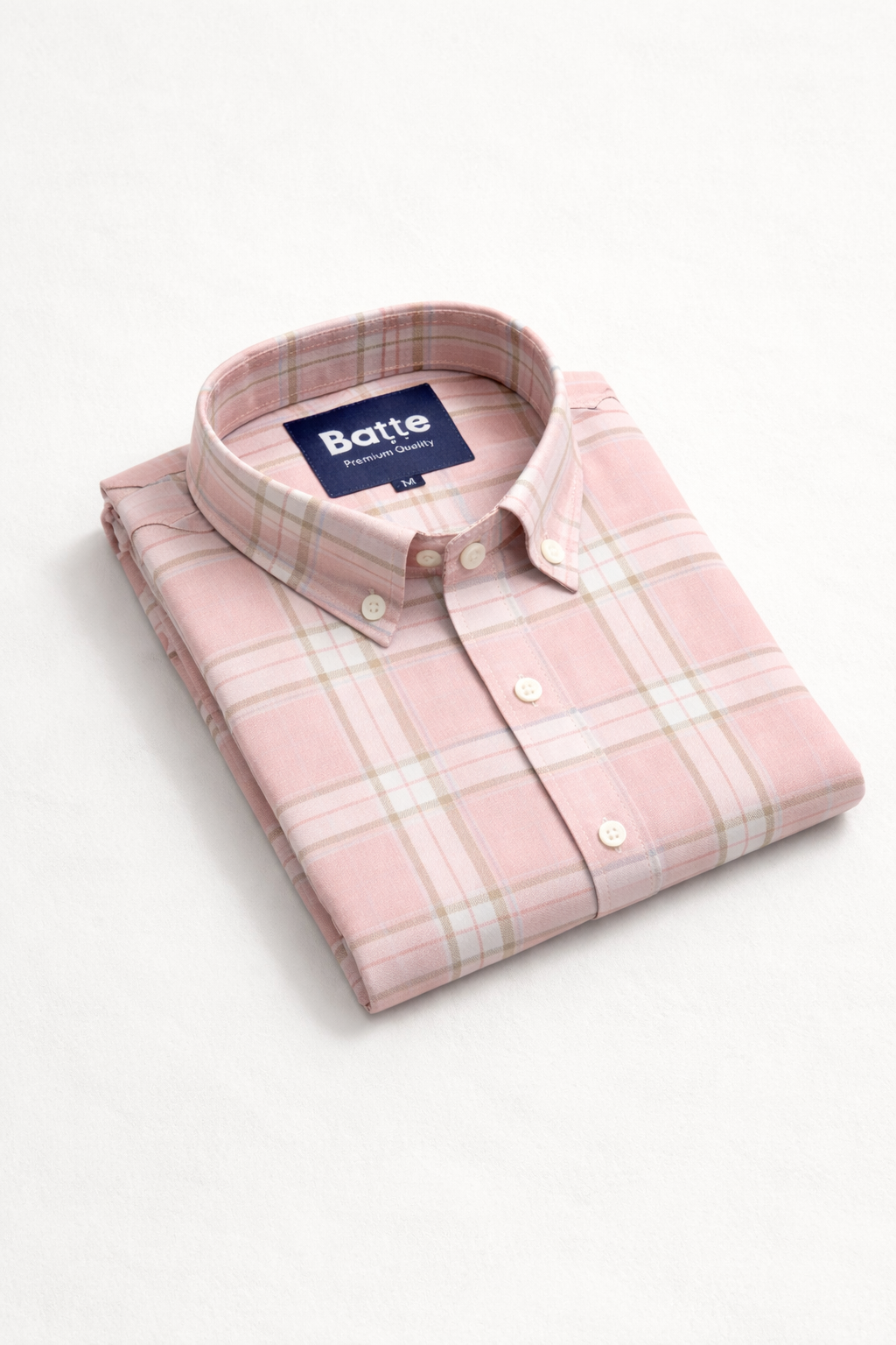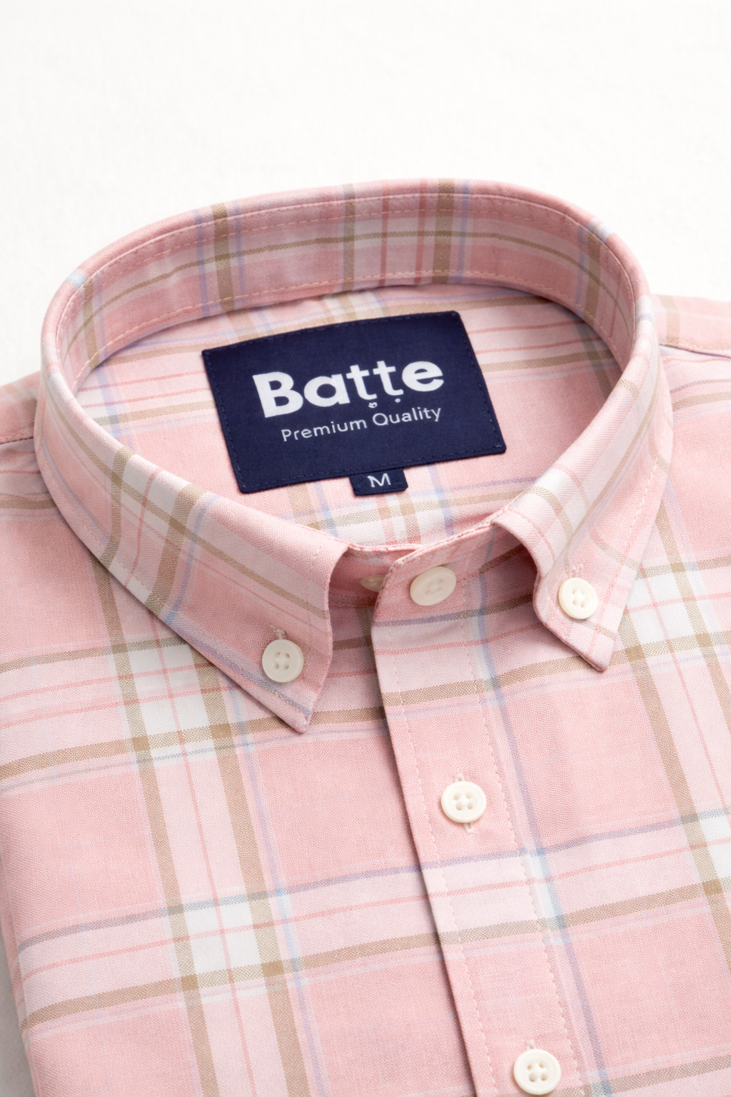 Classic soft brown check shirt crafted from a breathable cotton-linen blend for a comfortable and stylish everyday look.