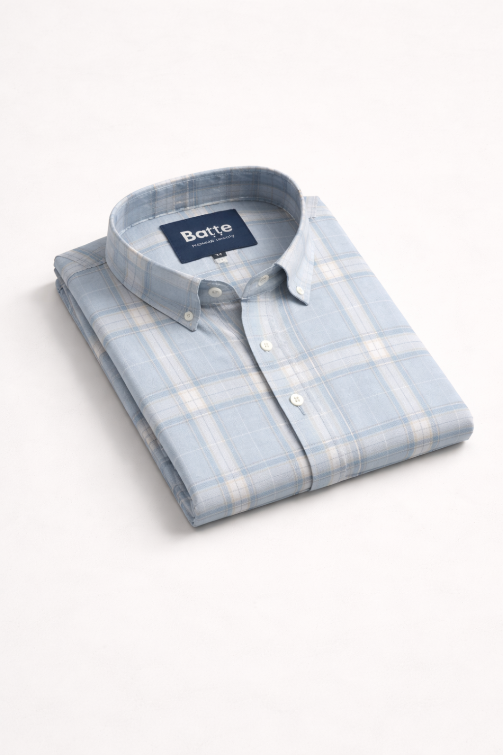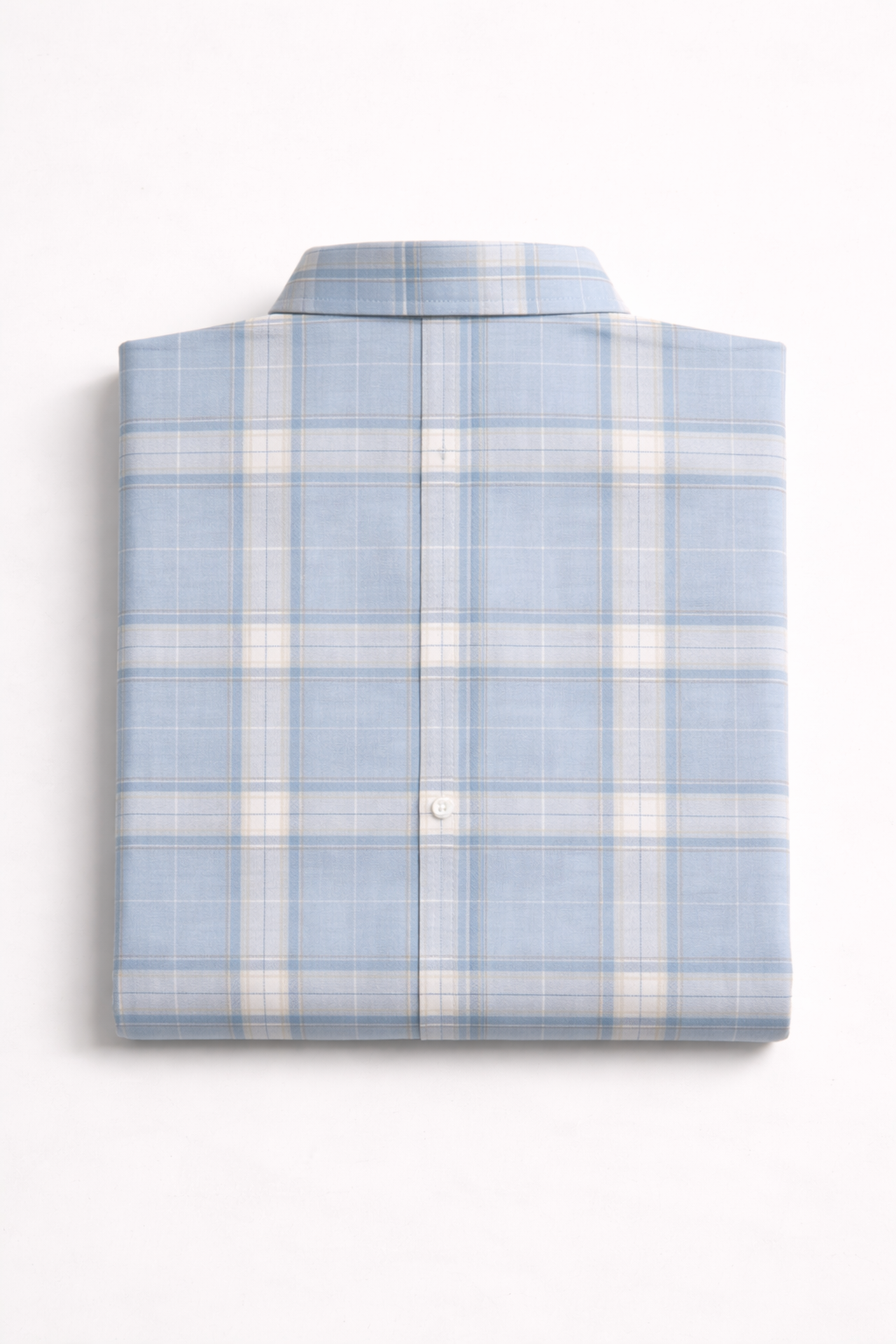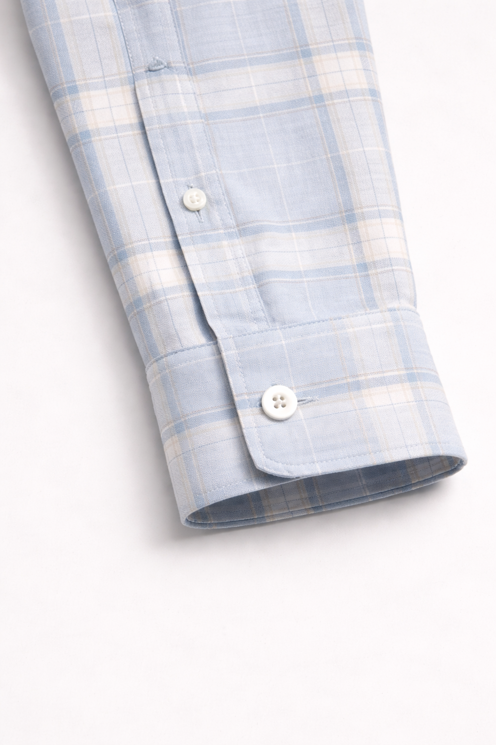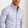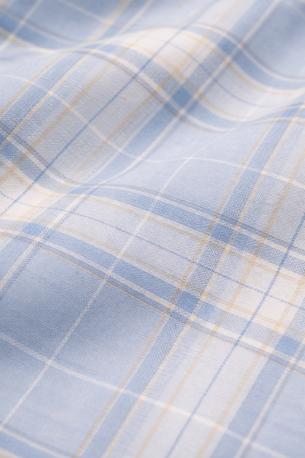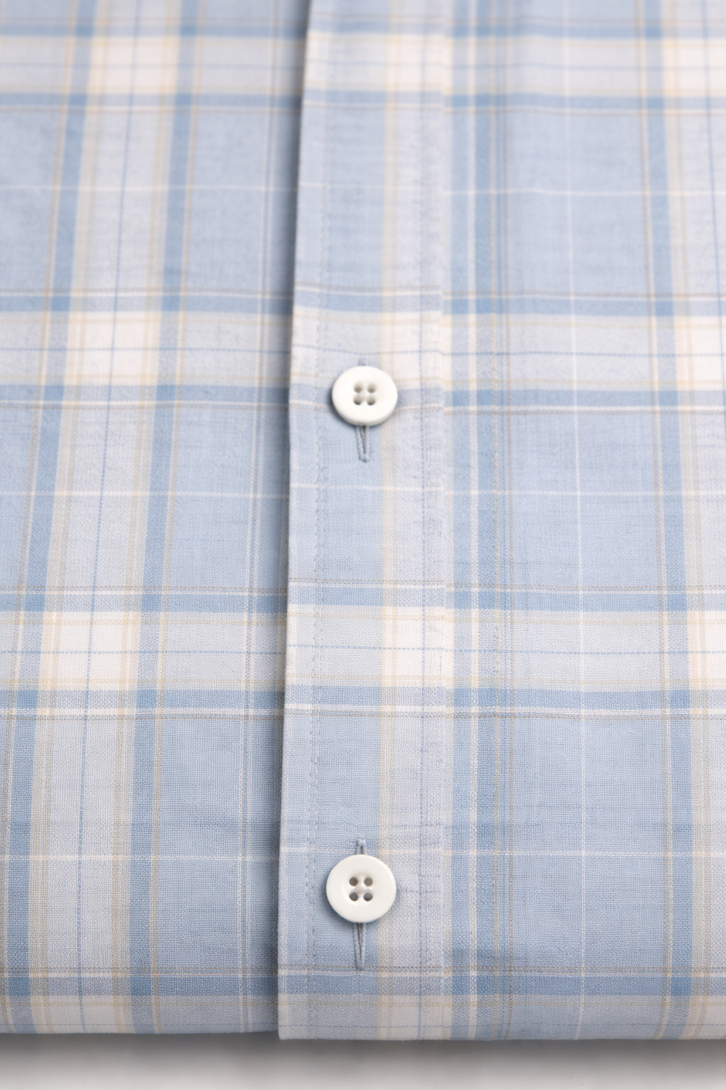 Classic sky blue check shirt crafted from a breathable cotton-linen blend for a comfortable and stylish everyday look.