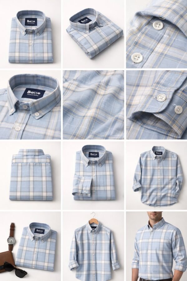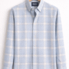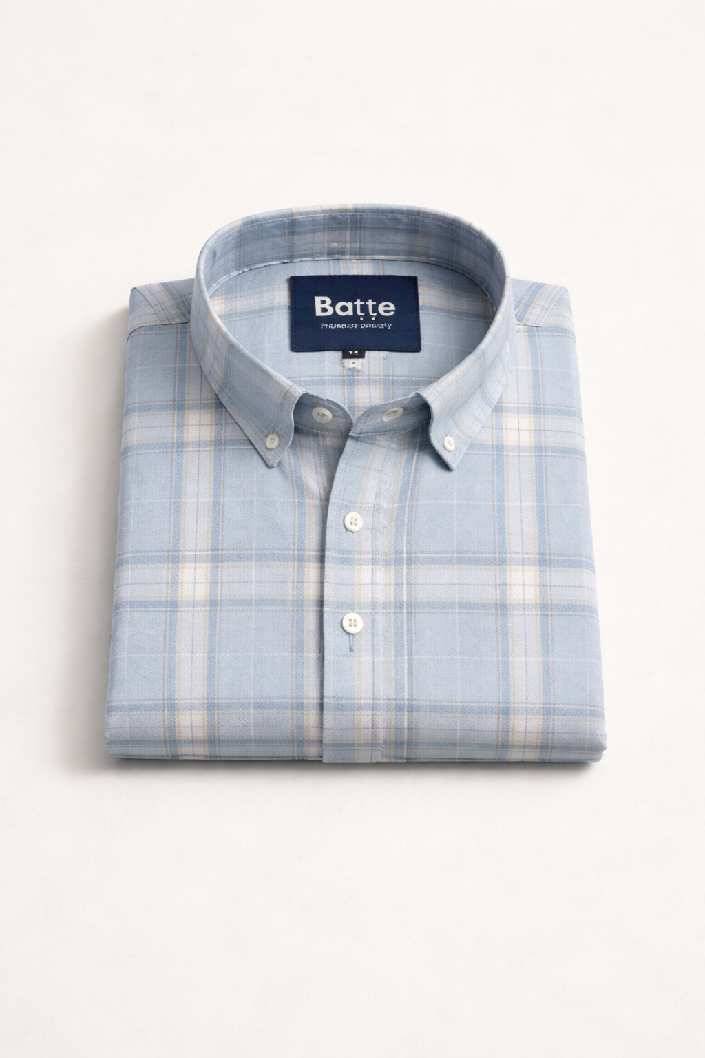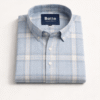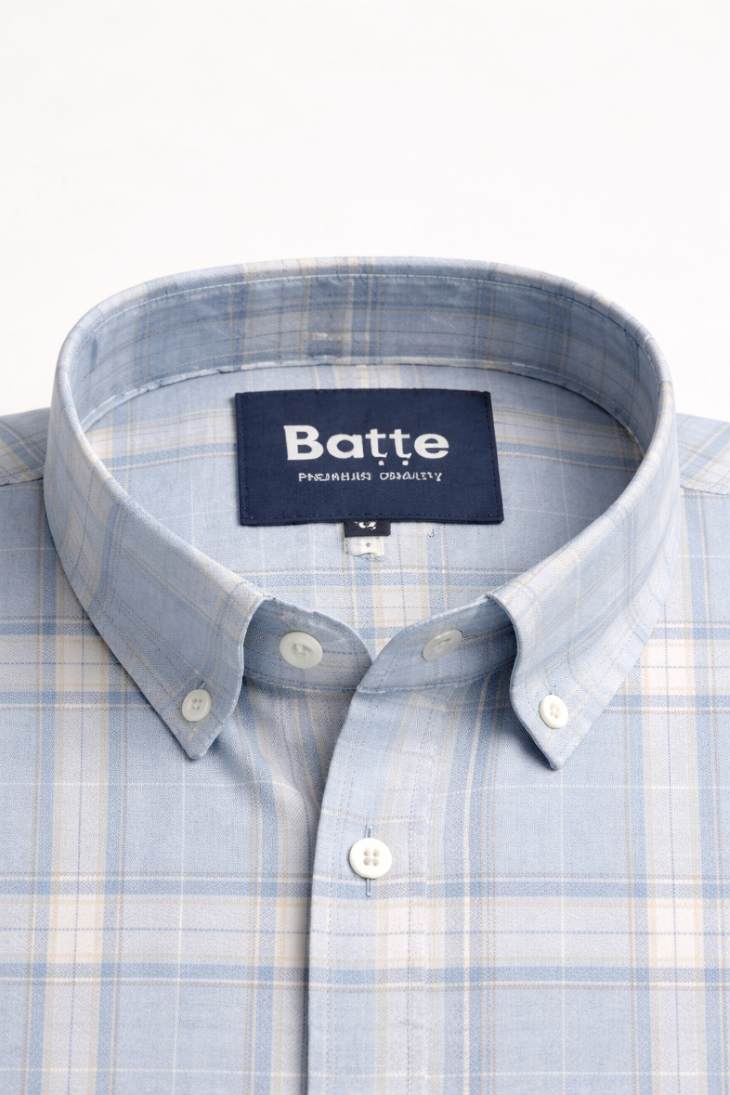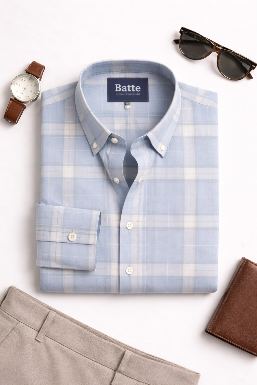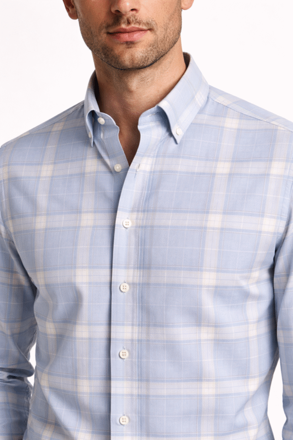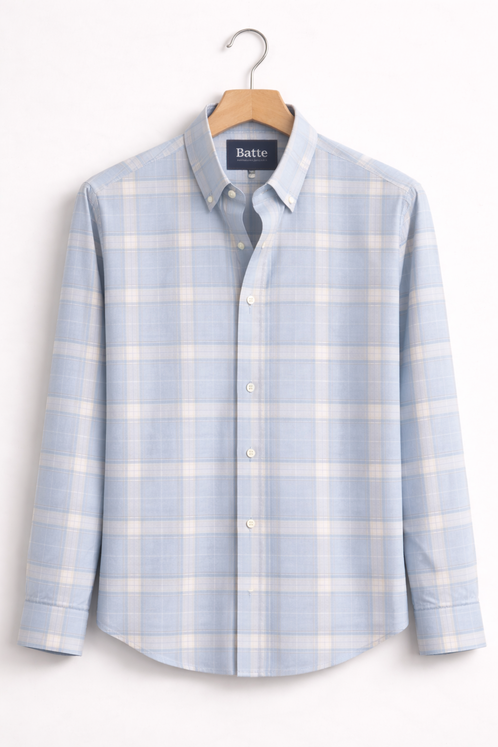 Classic sky blue check shirt crafted from a breathable cotton-linen blend for a comfortable and stylish everyday look.