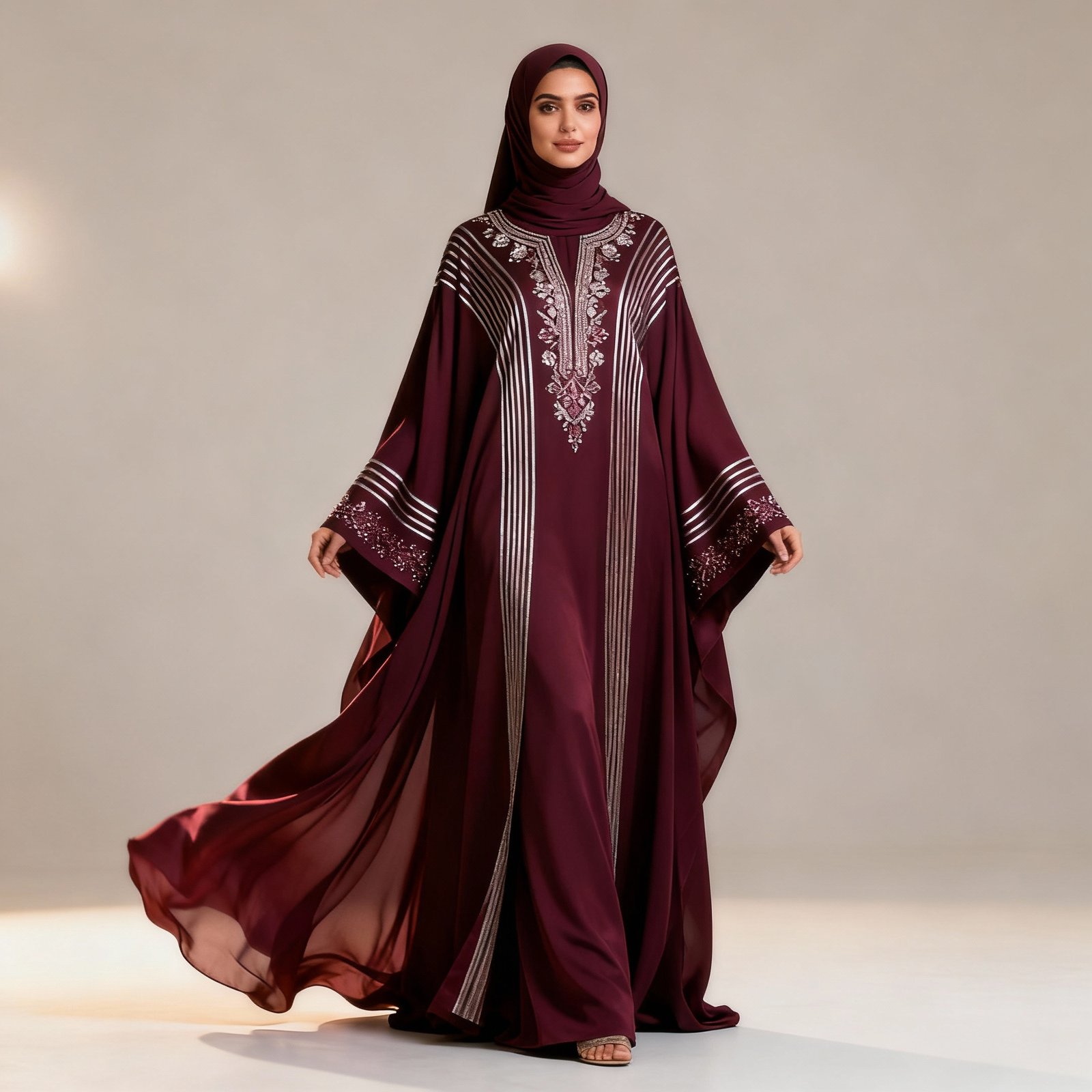 A luxurious Dubai abaya featuring a flowing silhouette and elegant detailing. Crafted from premium fabric, this abaya offers comfort and refined style for special occasions or everyday glamour.